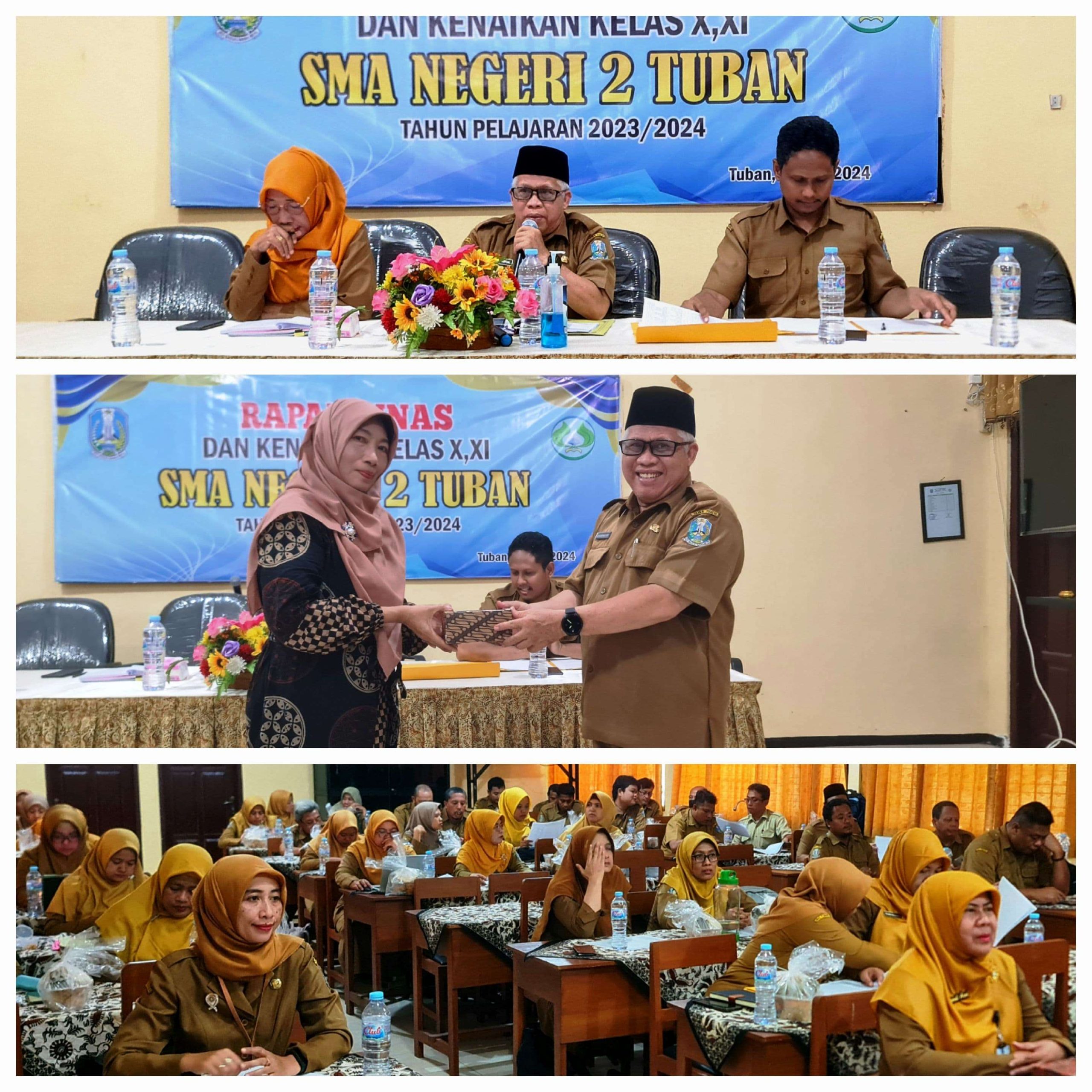 Selasa, 11 Juni 2024. Rapat Dinas dan Kenaikan Kelas X dan XI SMAN 2 Tuban Semester Gasal TP. 2023/2024 dilanjutkan dengan pemberian tali asih kepada Guru yang telah purna tugas yakni Ibu Hj. Suminarsih, S.Pd.